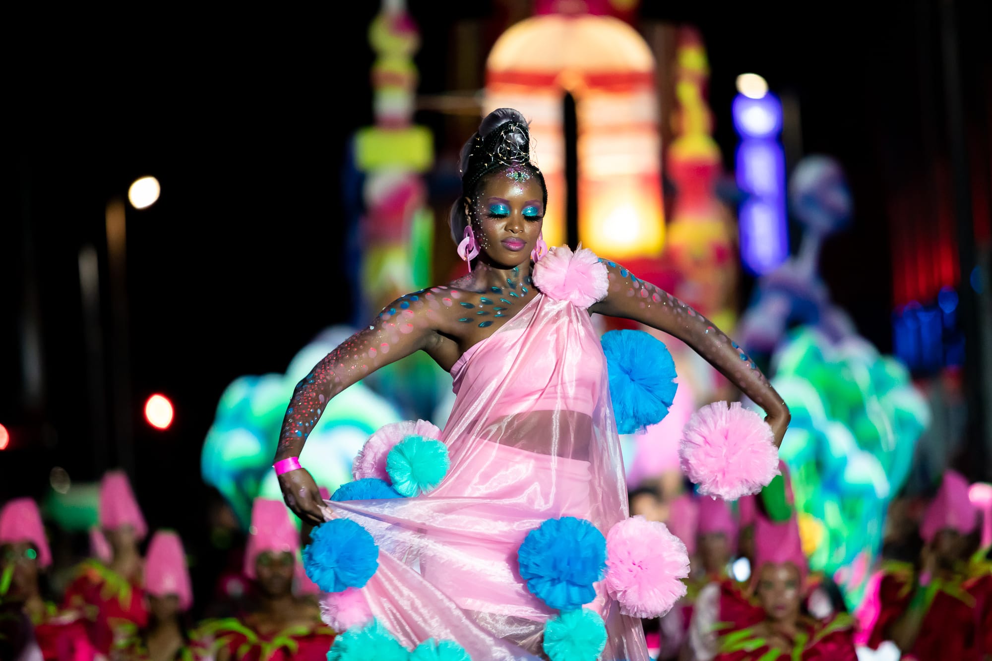 Calling it a parade doesn't quite capture the scale. The carnival is closer to a travelling stage production that happens to roll through the city.
